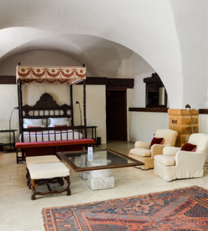 The rooms are located in the charming outbuildings of the Château, between the vast inner courtyard and the surrounding valleys, and have a more refined historical style, with a touch of nature. The authenticity of the place has been preserved so that you can enjoy every moment. Our classic courtyard rooms include the Montbellet de Saint Try Suite, the Jules de Chevalard Suite and the Louisa Suite. The upper courtyard consists of the Croppet de Varissan, François Aricor and Boutechoux de Chavanes rooms
